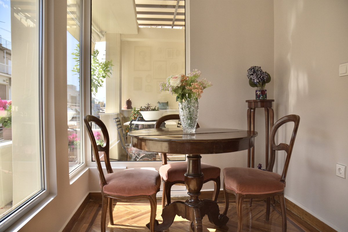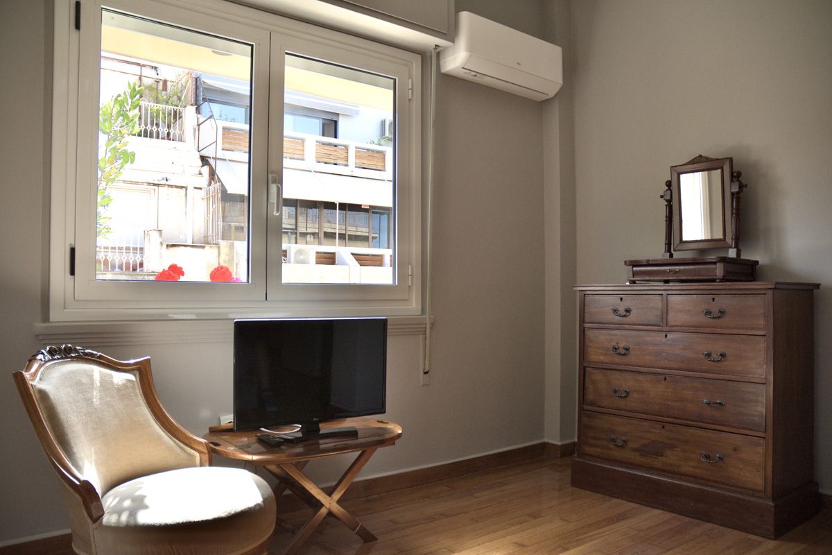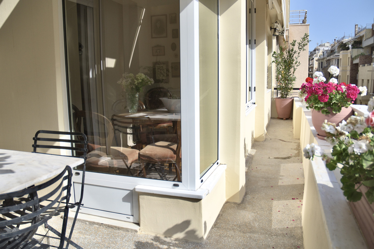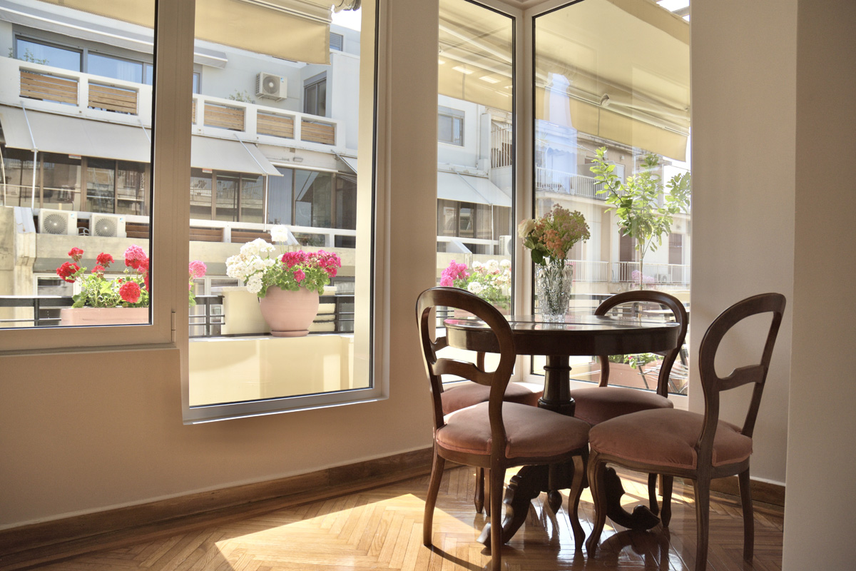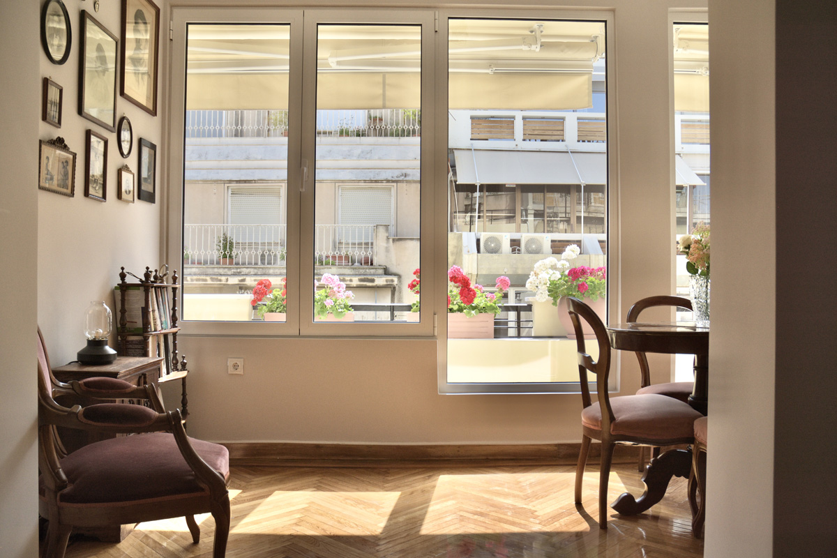 Extensively renovated 2022 City center, 4th (out of 4) floor sunny and spacious 100 sq. m apartment in the famous cosmopolitan neighborhood of Kolonaki. 5 minutes by foot from the "Panepistimio" underground station and 12 minutes walking distance from Syntagma square. Enjoy the very heart of Athens in a classic stylish 50's vintage apartment with all the modern comforts!